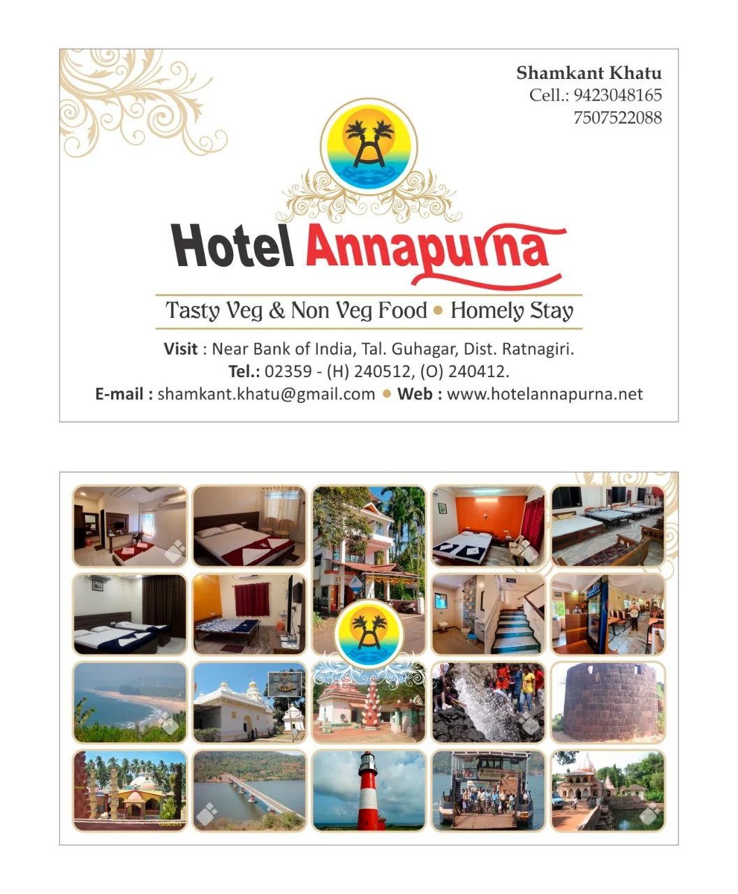 A cozy lodging setup with quality restaurant. We provide best yet affordable accommodations for families and small groups. Our restaurant is one of the famous place in Guhagar for both veg and non-veg food