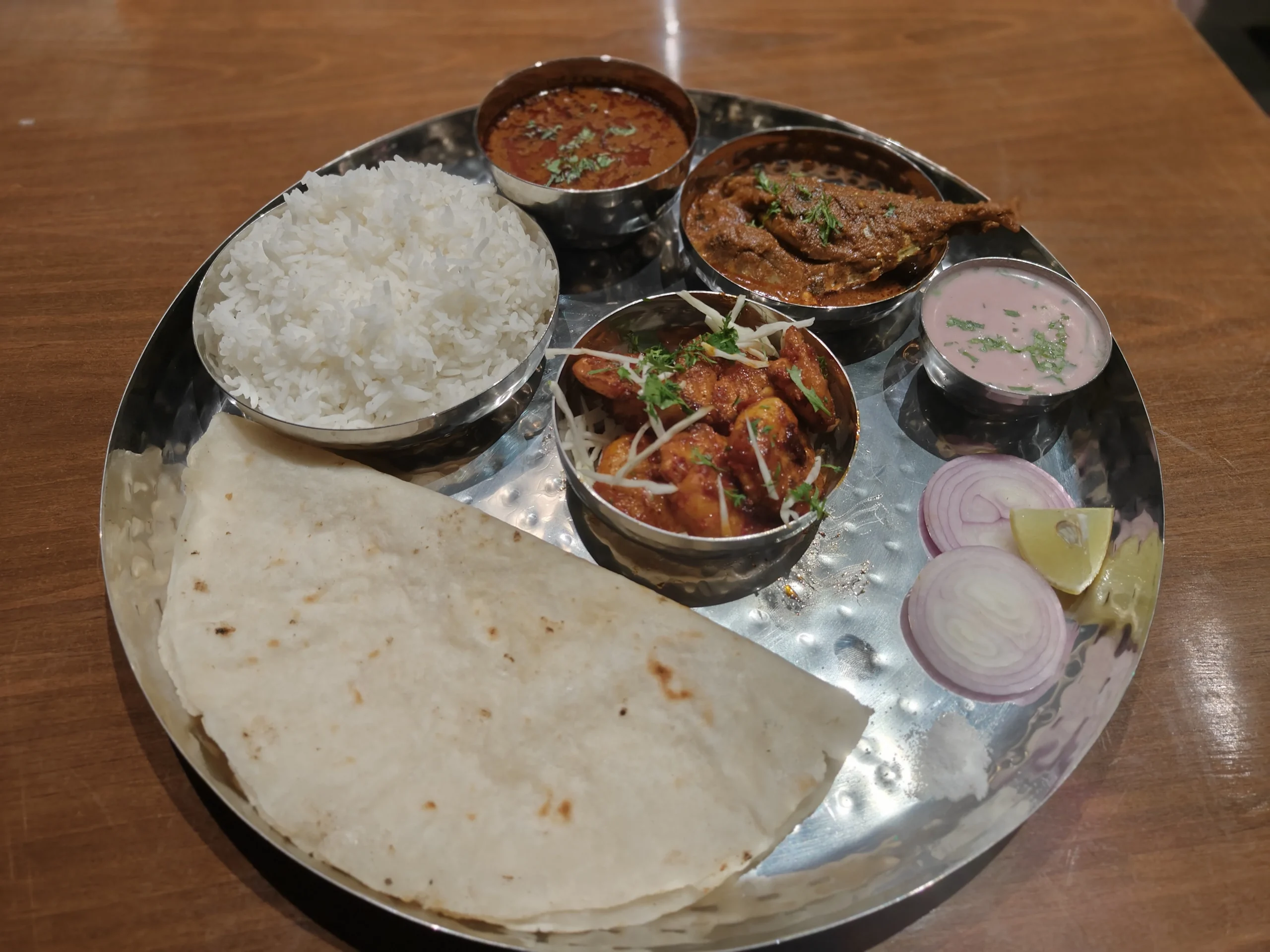 Fine dIne restaurant. Indian, Punjabi, chinese, Tandoor food available. Veg., Non. Veg, Fish, Chicken, Mutton, Fish Thali available.