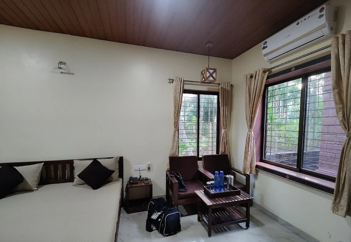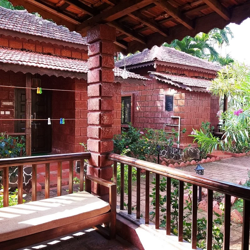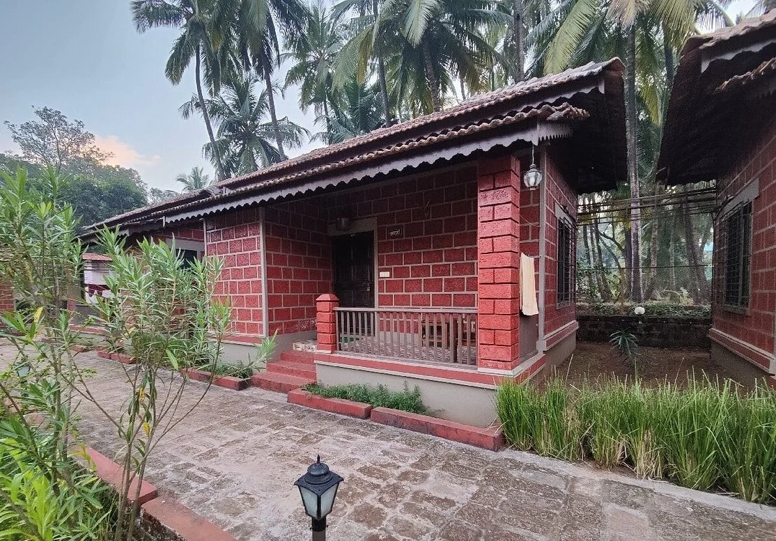 Comfy, and serene stay at Guhagar. This facility is set of seven luxurious cottages built with laterite stone, giving cool and rustic experience. A 2 min walk from here takes us to the beach.