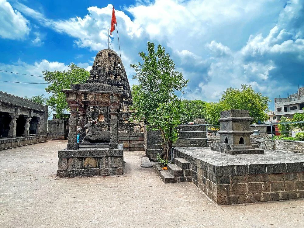 The temple stands on a historic foundation once known as Ekchakranagar during Yadava reign, serving as an important southern boundary with strategic and spiritual significance. Archaeological evidence and inscriptions attest to temple restorations and donations recorded between 1300–1305 CE by Brahmadevarana and Baidevarana brothers, overseeing the region as military supervisors