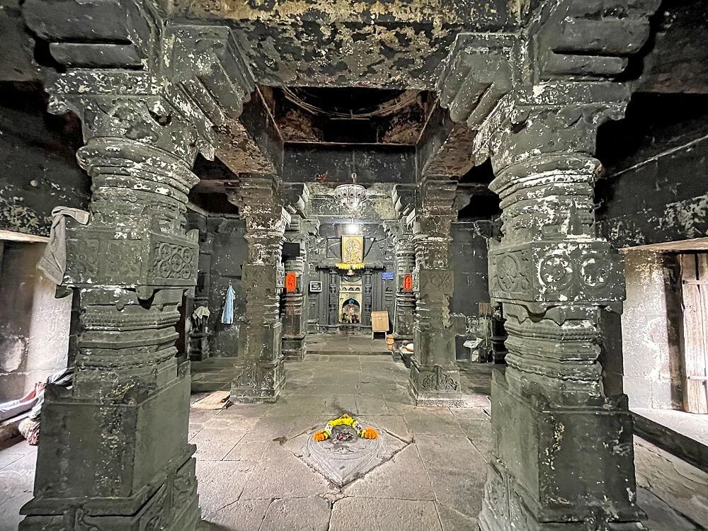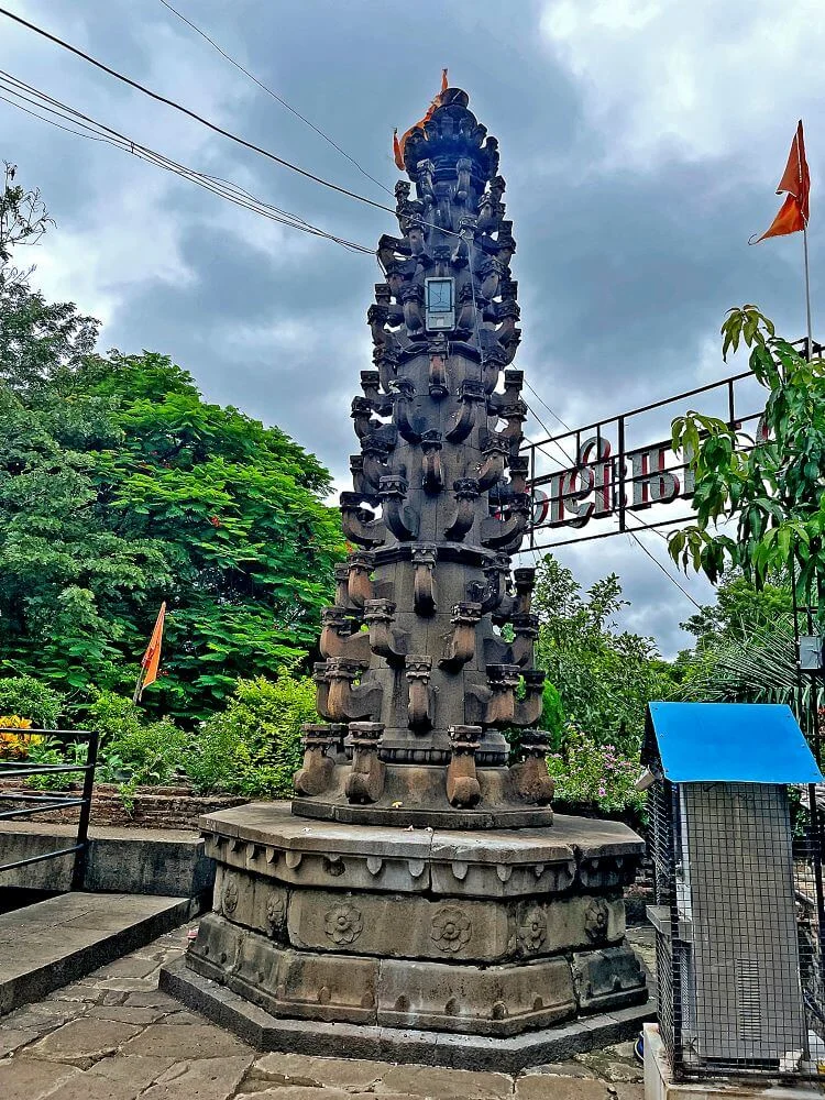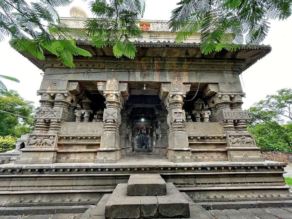 Renovated by Sardar Ambaji Purandare in the 18th century, the temple preserves its original Yadava-era setting and Maratha-period artistry. The sanctum also holds a brass bell and is adorned with panels telling stories of devotion, folklore, and mythological scenes. A carved tulsi stand, rare for temples of this era, stands near the entrance, symbolizing sanctity and continuity of tradition