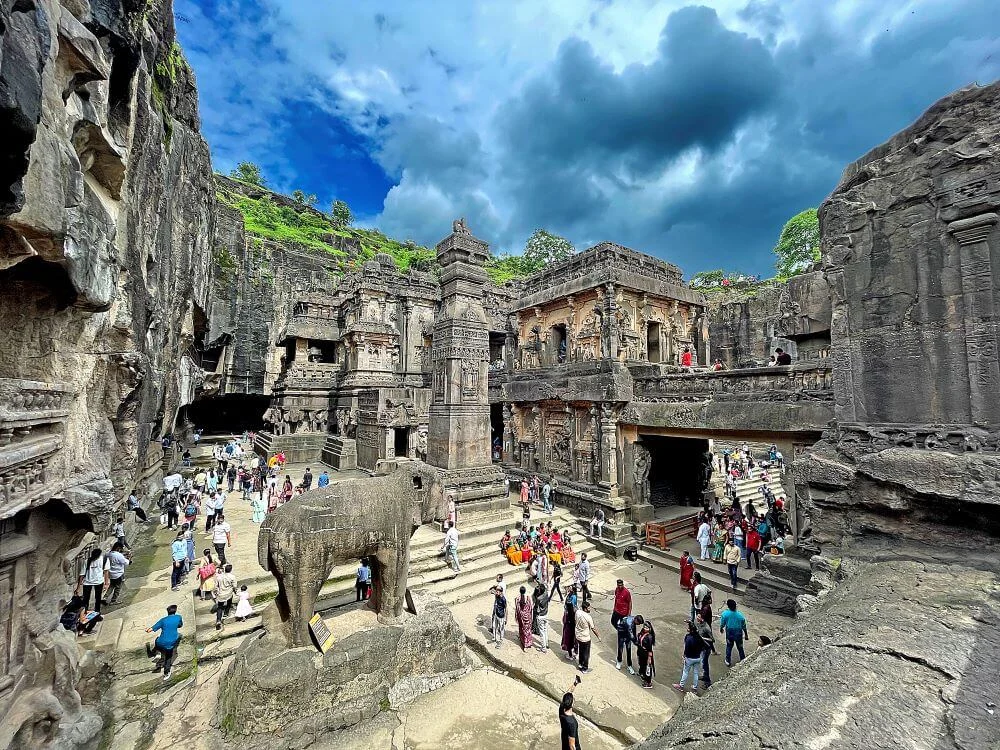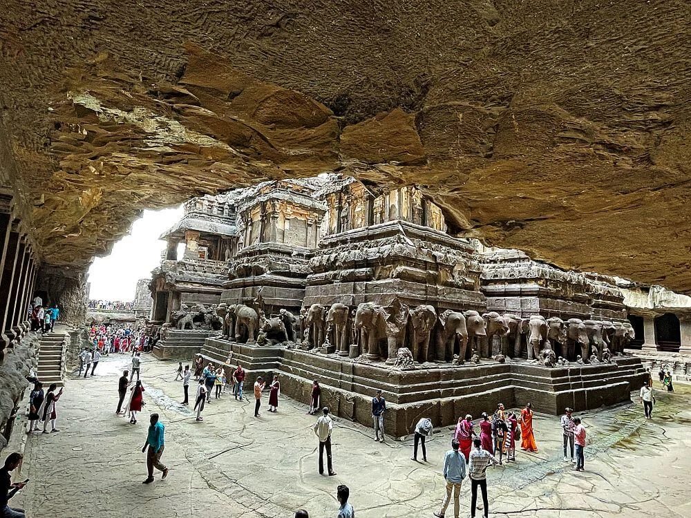 Commissioned initially by King Dantidurga and completed by King Krishna I, the temple took several generations of Rashtrakuta rulers around 150 years to embellish, adding surrounding shrines such as the Matṛka, Lankeshwar, and Sarita temples. Measuring 300 feet in length and 175 feet in width, it fully integrates Nagara (northern) and Dravidian (southern) architectural elements — resembling Karnataka’s Virupaksha Temple of Pattadakal, yet unique in being carved from a single basalt rock.