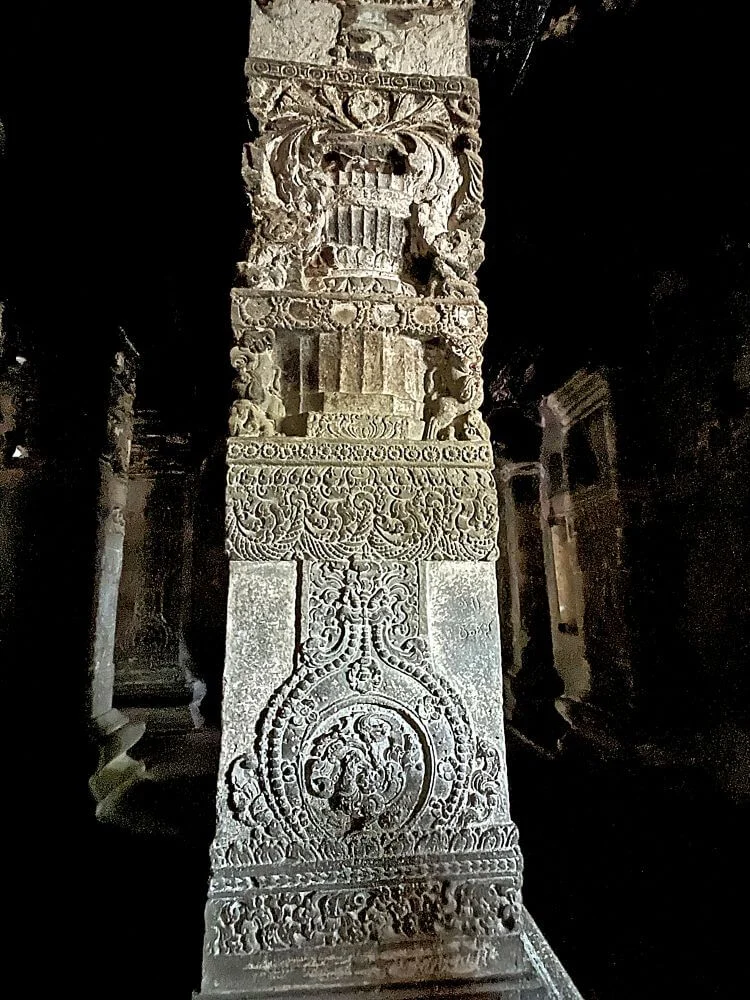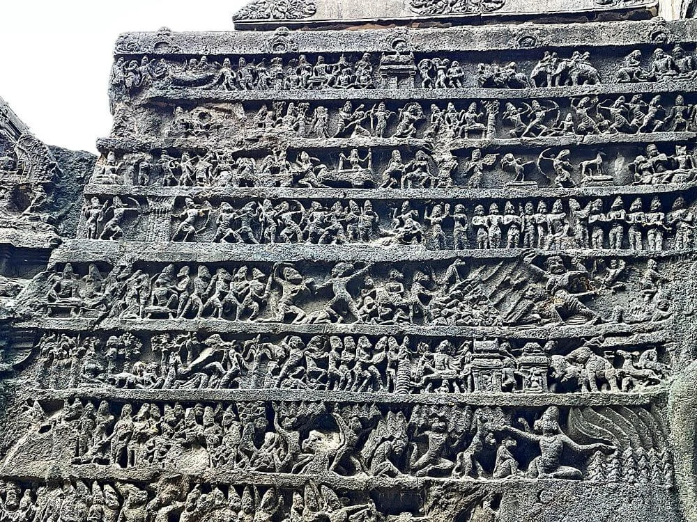 Legends further enrich its history. One famous tale tells how Krishna I’s queen, eager to see the temple’s completion, vowed to fast until she beheld its spire. The architect Kokasa of Paithan fulfilled her wish in just seven days by carving from the top down, earning eternal fame. Another legend claims Aurangzeb attempted to demolish the temple — but even his armies failed, leaving him in awe of its magnificence. Originally lime-washed to symbolize the snowy peak of Mount Kailash, traces of the white coating are still visible.