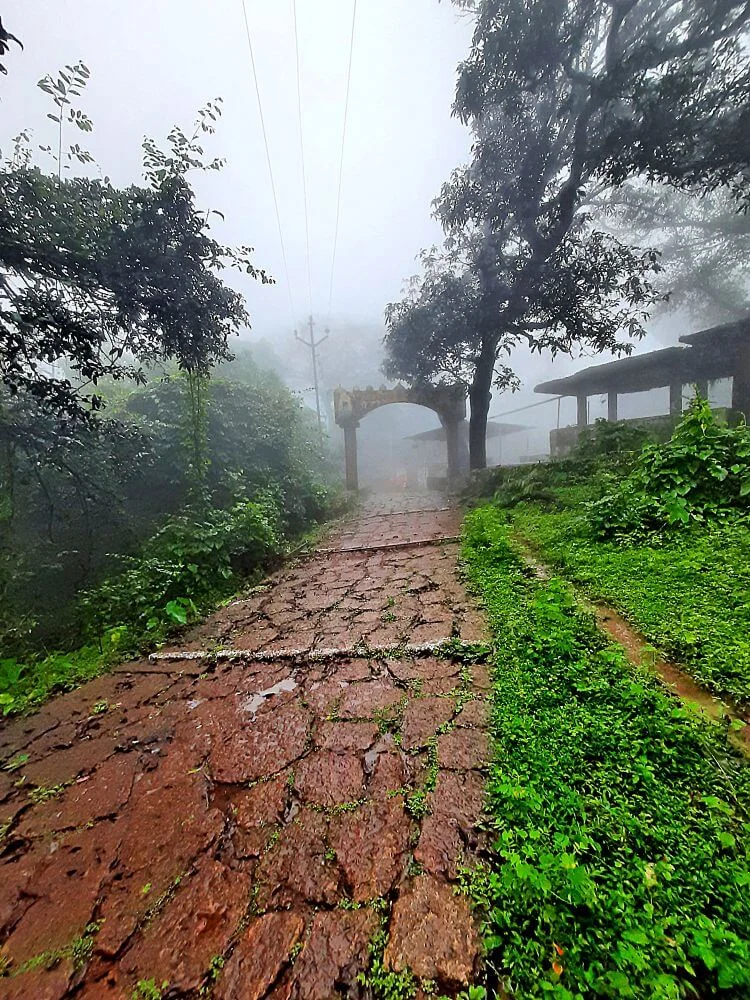 A fully motorable road leads up to Mapgaon base village, from where approximately 750 uphill stone steps take visitors to the temple. The trek is moderately challenging but safe and well‑maintained