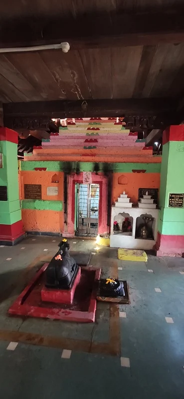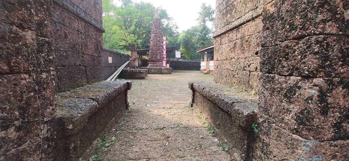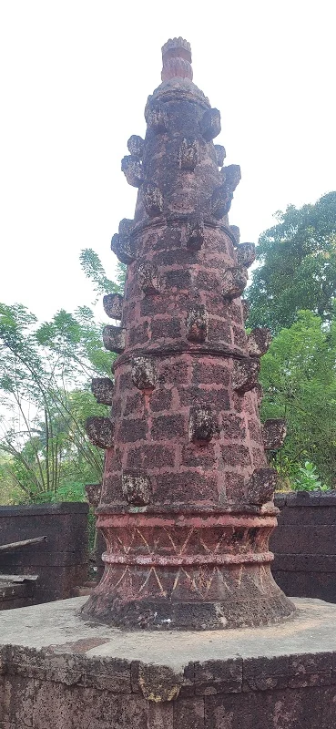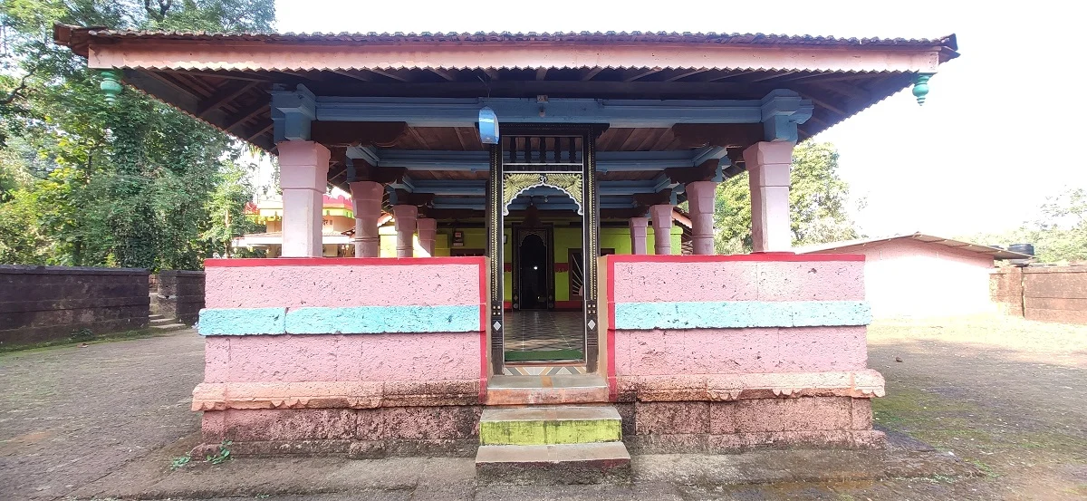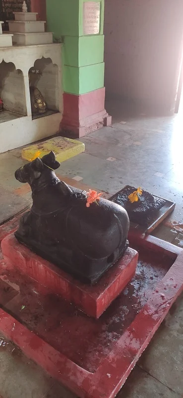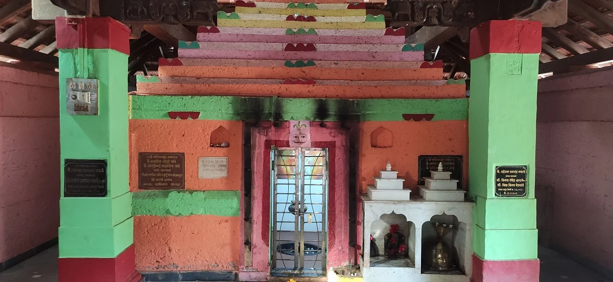 The temple’s architecture is a remarkable example of Hemadpanthi style, built entirely from laterite (jambha) stone without any cement. Its design includes a sabhamandap (assembly hall), antaral (inner hall), and garbhagriha (sanctum sanctorum). The intricate wooden entrance is beautifully carved, while the sanctum houses a black stone Shivlinga, distinct from the reddish stones found elsewhere. Within the sanctum lies a stone Nandi and a brass mask of Lord Shiva with a serpent hood. The surrounding courtyard features four traditional Deepmalas (lamp towers), lit during Tripurari Pournima, creating a mesmerizing sight.