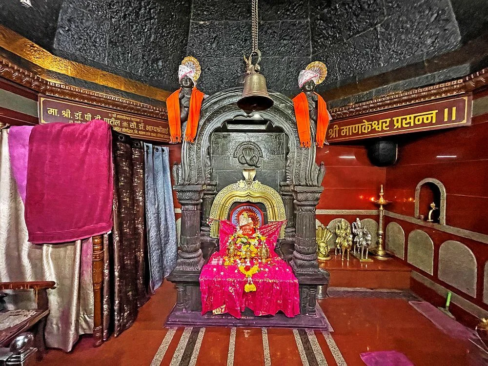 Adjacent shrines honor Goddess Jogeshwari and Lord Naykoba, a warrior deity. An inscription in the courtyard records a major renovation in 1885.