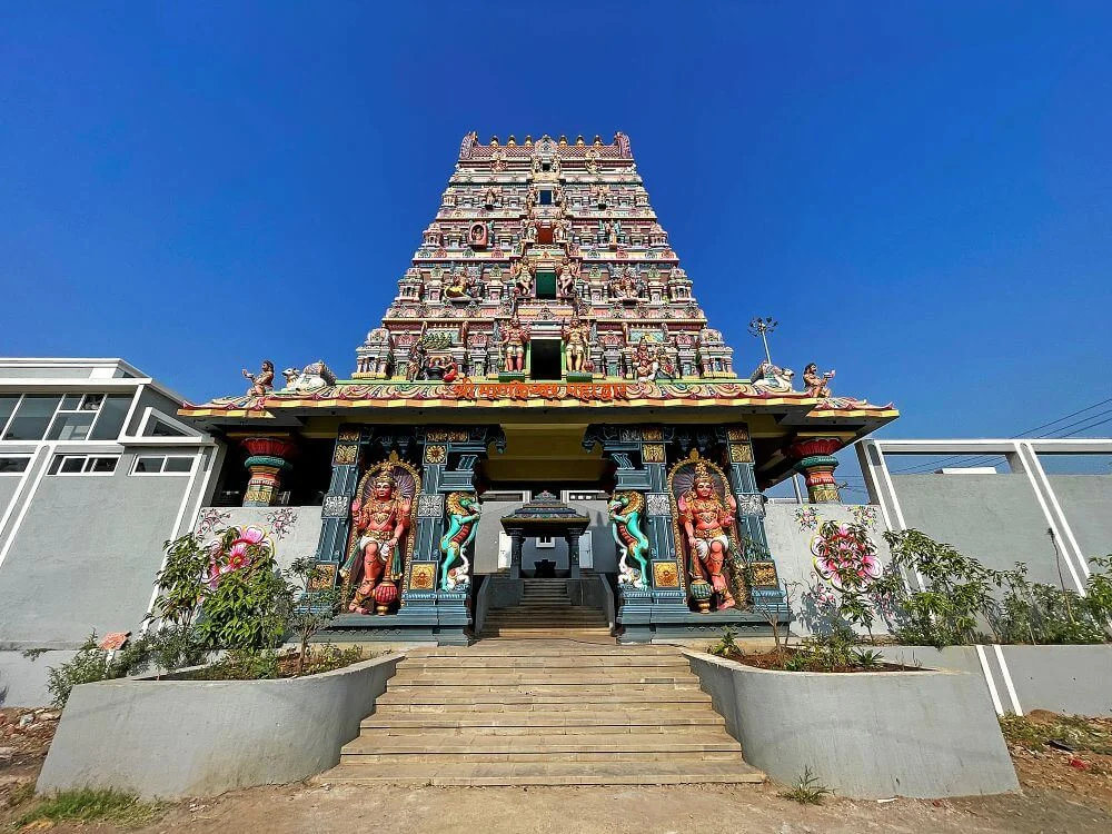Though its foundations are lost to time, the temple is believed to be over a thousand years old. Local legend recounts how the Manakar clan, original guardians of the village, invoked divine protection, only for Lord Mankeshwar to reveal in a vision that he already resided there. Upon searching, they discovered a naturally appearing stone idol at the current site, building a small shrine that later expanded into the grand southern-style temple seen today.