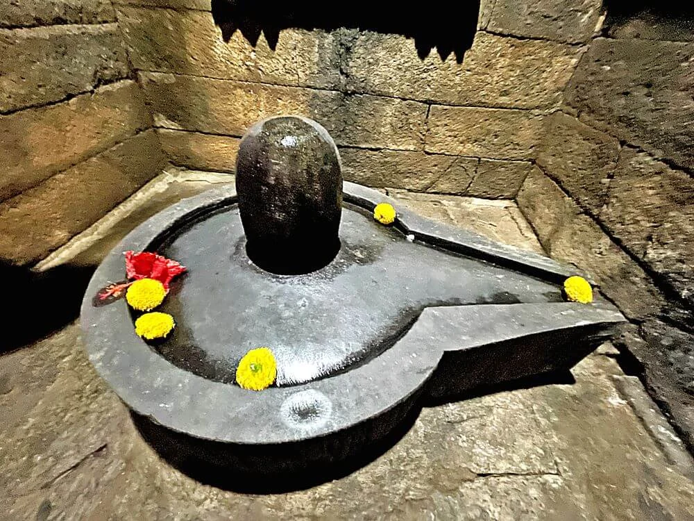 Inside the sanctum, the ancient Shiva Lingam faces an intricately sculpted Uma–Maheshwar image. External walls are embellished with geometric patterns, creeper motifs, and Kirtimukha designs. The temple’s porch exterior features paired human figures (yugul), while a crocodile-headed water spout drains abhishek water from the sanctum. The multi-tiered spire integrates miniature spires within its design, a hallmark of the Pancharath style.