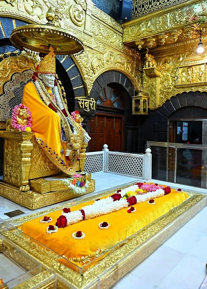 The sanctum remains the heart of daily worship, where five Aartis are conducted every day — Bhupali, Kakad, Madhyan, Dhoop, and Shej Aarti. Devotees can participate in these via advance online booking through the Shri Sai Baba Sansthan Trust. Nearby sacred places include Dwarkamai, Chavadi, Guru Sthan (under the sacred neem tree), and Lendi Baug, where an eternal lamp called Nandadeep still burns.