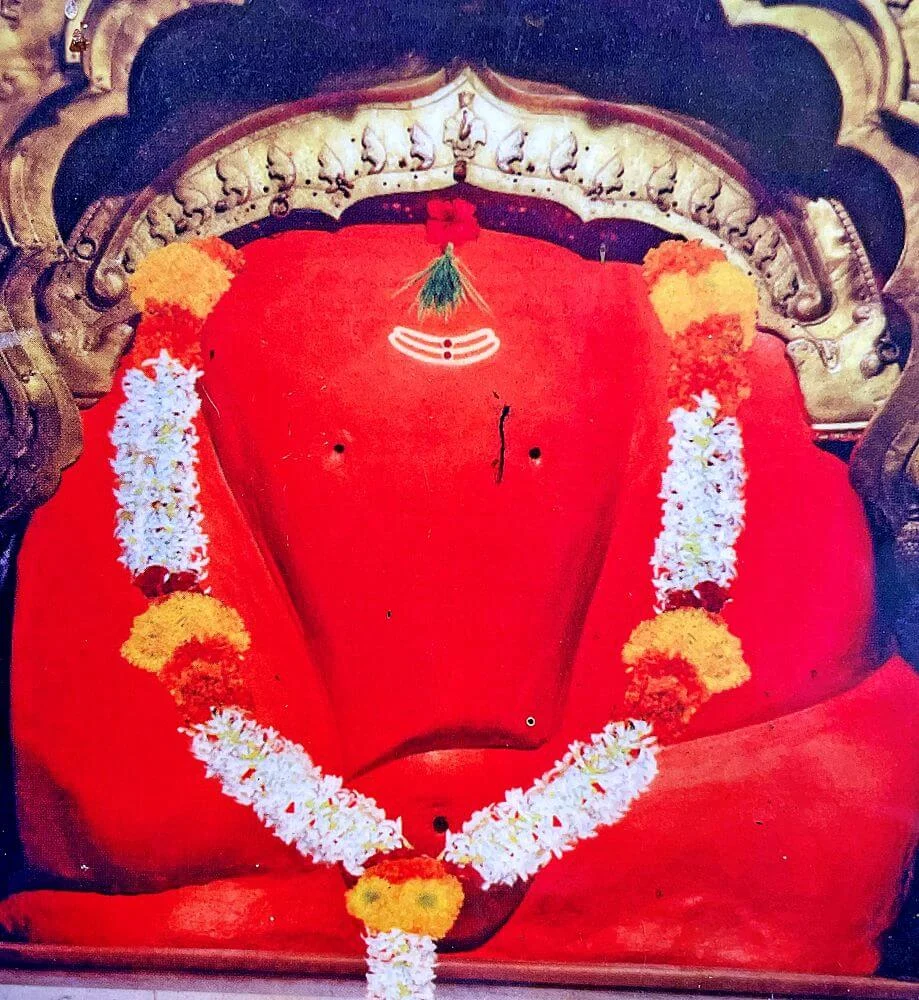 Standing atop a strategic hill, the north-facing black stone temple features a classic blend of elegance and spiritual purpose. Its sanctum, fifteen feet high and ten feet wide with a dome-shaped stone roof, houses the swayambhu (self-manifested) idol of Lord Ganesha, sheathed in metal, his trunk turned decisively to the right. The deity is flanked by consorts Riddhi and Siddhi, embodying prosperity and spiritual power. Entrance to the sanctum is protected by sculpted guardians Jaya and Vijaya, while the hall displays paintings depicting the epic legend of Sage Bhushunda and scenes from Ganesha lore