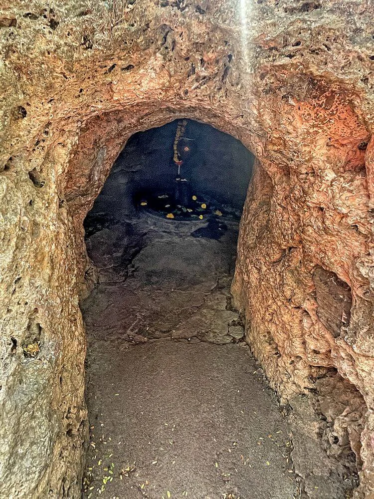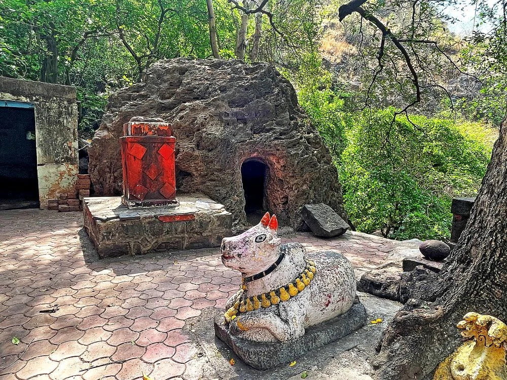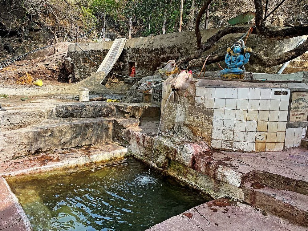 From the base of Hivatad village, a path of 125 well-carved stone steps ascends to the temple, dotted with resting shelters and a dharmashala for pilgrims. Midway, a natural spring flows from three Gomukh (cow’s mouth‑shaped outlets) into a pond near stone idols of Shankar and Nandi. Along the route, ancient hero stones (Veergals) inscribed in Devanagari bear testimony to the site’s antiquity.