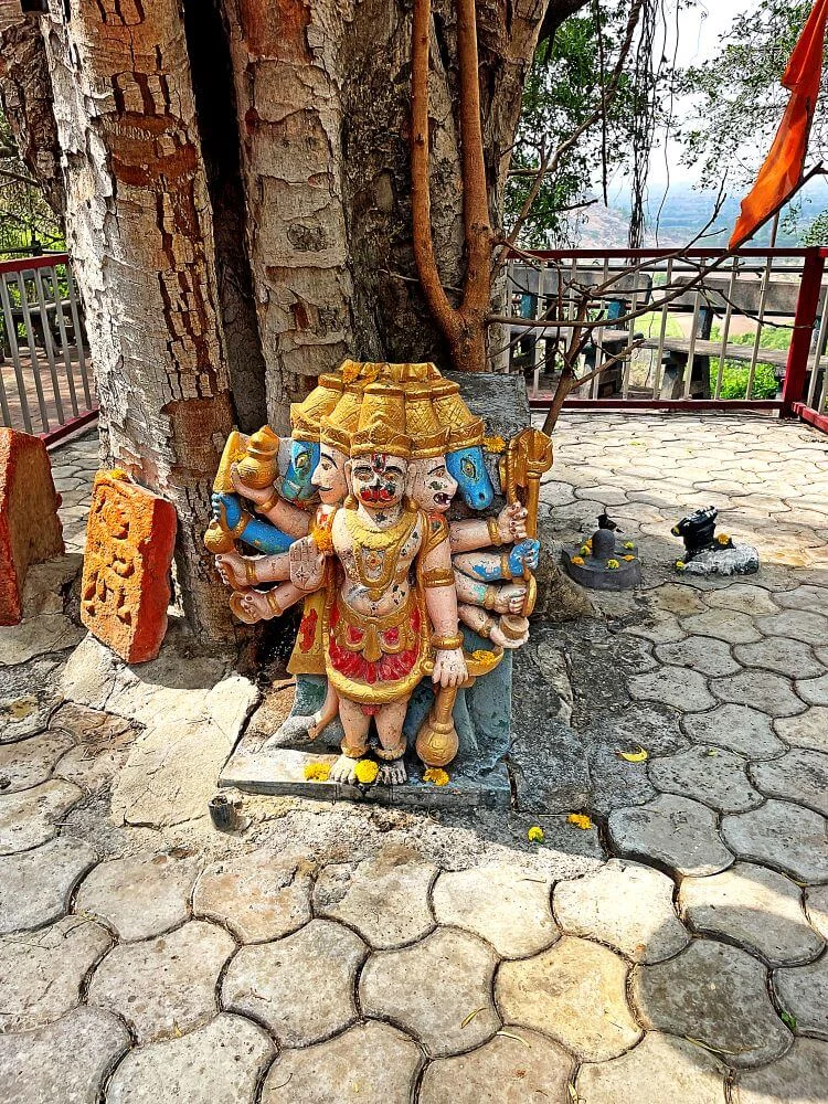 Surrounding the courtyard are broken spires, serpent carvings, Panchmukhi Hanuman statues, and shrines of local deities like Dattatreya, carved directly into the rock. The hilltop also houses priests’ quarters, stalls selling worship items, and a cowshed, maintaining its role as a living spiritual center.