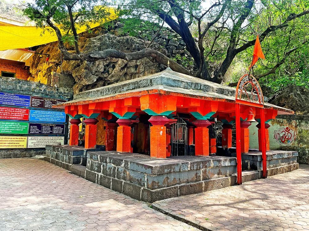 Architecturally stunning, the temple is built in the Hemadpanti style, dating back 700–800 years, with adjoining caves believed to be several millennia old. Legends describe that Sage Shukacharya narrated the Bhagavata Purana to King Parikshit at this site. Alarmed by his rising spiritual prowess, Lord Indra sent celestial nymphs to disrupt his deep meditation. Perceiving their intent, Shukacharya transcended his earthly form, merging into the cave wall — marking this sacred spot as his nirvana place.