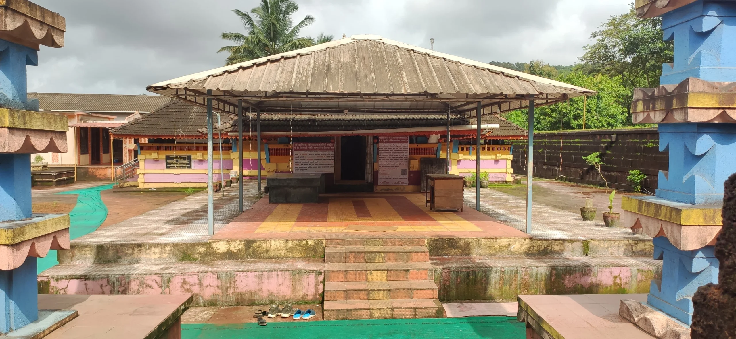 The architecture of the temple is typical konkani style, and a significant amount of wood has been used in its construction. The intricate carvings on the wood are truly awe-inspiring. Remarkably, no nails or screws were used in the temple’s construction. Instead, the wood pieces are carefully interlocked using a special technique, creating beautiful ornamental patterns. Surrounding the temple is a grand stone fortification. Over time, the temple needs some restoration and repairs, and we are striving to ensure that the temple remains intact in its original form for years to come.