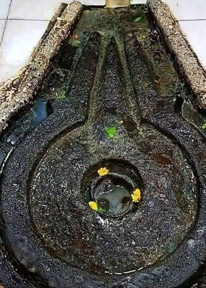 Inside, a majestic Nandi faces the sanctum, while a beautifully carved marble turtle symbolizes patience and purity. Descending into the sanctum, devotees behold the self-manifested Jyotirlinga, where three Lingas represent Brahma, Vishnu, and Shiva together. A continuous stream of sacred water flows from the Linga, representing the eternal Ganga. Adjacent stands a marble idol of Goddess Parvati, completing the divine triad.